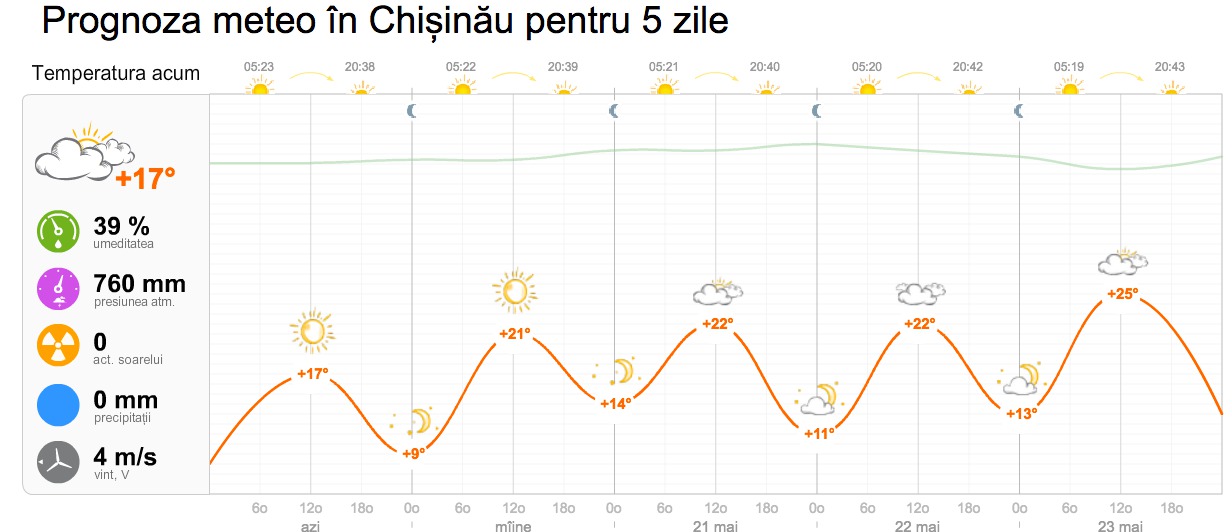 Secţiunea Meteo, la momentul actual oferă datele meteorologice pentru 5 oraşe : Chișinău, Bălți, Cahul, Tiraspol, Bender, Râbnița, Dubăsari.