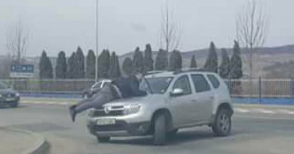 Main > noutati > auto > scene demne de un film de actiune pe o strada un om luat pe capota masinii si plimbat prin oras