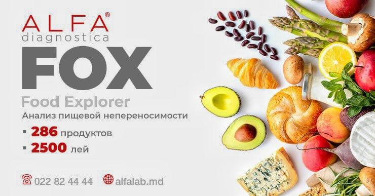 Тест выявляет иммунные реакции замедленного типа на компоненты продуктов питания, что нередко может являться причиной самых разнообразных симптомов, появляющихся после употребления тех или иных продуктов. Симптомы могут быть настолько неочевидными, что человеку трудно связать их происхождение с питанием. В качестве примера, можно привести мигрень, депрессивные состояния, боли в суставах, проблемы с кожей, отеки или дискомфорт в животе.Тест FOX определяет иммуноглобулины класса G (IgG) к компонентам 286 продуктов питания, включая, т.н. новые “суперфуды” (корешки, семена, листья, водоросли, ягоды), что делает его уникальным инструментом анализа возможных причин снижения качества жизни, связанных, даже с “правильным” питанием.Стоимость теста – 2500 леев, что является самой низкой ценой на рынке. Время выполнения – 2 рабочих дня. Подготовка – через 4 часа после последнего приема пищи.Результаты исследования оформлены в виде понятного заключения с цветовой интерпретацией по каждому из анализируемых продуктов. Все показатели сгруппированы по разделам, позволяющим работать с рационом питания и в дальнейшем контролировать результаты. Главное, на что следует обращать внимание при интерпретации – это продукты, на которые выявлены повышенные или очень высокие уровни антител. Возможно, именно эти продукты, следует исключить из рациона питания или ограничить их употребление. Так как в лаборатории пока не консультируют специалисты в области диетологии, интерпретацию следует осуществлять у других специалистов, которые занимаются вопросами питания (нутрициолог, диетолог, гастроэнтеролог).Подробный состав продуктов, анализируемых тестом FOX смотрите здесь.