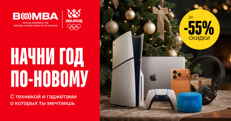 Переходи на страницу с праздничными предложениями и выбирай подарки для любимых и близких — и, конечно, для себя. ❤️Специально для тебя мы собрали подборку гаджетов и техники в Bomba, которые точно оценит каждый.🎬 Samsung QE50Q7FAAUXUA – QLED 50″. QLED-экран диагональю 50 дюймов в сочетании с 4K UHD, поддержкой Quantum HDR и Q4 AI Processor раскрывает глубину цветов и контрастов, создавая по-настоящему живую и яркую картинку. Праздничная цена 🎄: 7999 леев | Честная рассрочка 0%: 667 леев в месяц, 12 месяцев🎬 Samsung QE55QN70FAUXUA – Neo QLED 55″. Этот телевизор превращает гостиную в домашний кинотеатр и игровую арену: интеллектуальное масштабирование до 4K, частота обновления до 144Hz и адаптивный звук создают эффект полного погружения. Праздничная цена 🎄: 13949 леев | Честная рассрочка 0%: 1163 леев в месяц, 12 месяцев🔥 Apple iPhone 15 128GB. Мощь чипа A16, яркий Super Retina XDR и 48 МП камера, с которой каждый момент становится по-настоящему впечатляющим. Цена 🎄: 14999 леев | Честная рассрочка 0%: 1250 леев в месяц, 12 месяцев🔥 Apple iPhone 17 Pro 256GB. Дерзкий, мощный флагман с ярким Super Retina XDR OLED-дисплеем, молниеносным чипом A19 Pro и потрясающими тройными камерами, которые превращают каждый кадр в шедевр. Цена 🎄: 27499 леев | Честная рассрочка 0%: 4584 леев в месяц, 6 месяцев. Гарантированный подарок при покупке 🎁: зарядное устройство для iPhone📱 Samsung Galaxy A16 4/128GB. Стильный смартфон с большим 6.7″ Super AMOLED‑дисплеем и мощной батареей 5000 mAh. Отличный выбор для повседневных задач и запоминающихся фото с 50 МП тройной камерой. Праздничная цена 🎄: 2899 леев | Честная рассрочка 0%: 484 леев в месяц, 6 месяцев📱 Samsung Galaxy A56 5G 8/256GB. 6.7″ Super AMOLED‑экран и частота 120Hz оживляют каждое видео и игру, а тройная 50 МП камера делает фото по-настоящему впечатляющими. Сочетание процессора высокой производительности, 8GB RAM и батареи 5000 mAh гарантирует день без подзарядки и плавную работу всех функций. Праздничная цена 🎄: 8199 леев | Честная рассрочка 0%: 1367 леев в месяц, 6 месяцев📱 Xiaomi Redmi A5 3/64GB. Огромный 6.88″ IPS‑экран с частотой обновления 120 Hz и тройная основная камера 32 МП для ярких фото и видео. С мощной батареей 5200 mAh, 3GB RAM и 64GB памяти: отлично справляется с повседневными задачами и длительным использованием без подзарядки. Цена 🎄: 1599 леев | Честная рассрочка 0%: 267 леев в месяц, 6 месяцев | Гарантированный подарок при покупке 🎁: Наушники Redmi Buds 6 Play📱 Xiaomi Redmi Note 14 6/128GB. Плавный AMOLED‑экран, мощный процессор Helio G99 Ultra, тройная камера 108 МП и батарея 5500 mAh. Праздничная цена 🎄: 3099 леев | Честная рассрочка 0%: 517 леев в месяц, 6 месяцев | Гарантированный подарок при покупке 🎁: Powerbank Xiaomi 20000mAh🎶 Колонка для вечеринок JBL PARTYBOX 110. Мощный звук 160 Вт, эффектная динамическая подсветка и до 12 ч автономной работы превращают любую вечеринку в незабываемое музыкальное шоу с качественным басом. Праздничная цена 🎄: 6999 леев | Честная рассрочка 0%: 1167 леев в месяц, 6 месяцев🎶 Колонка для вечеринок JBL PARTYBOX 310. Мощная портативная акустическая система с 240 Вт JBL Pro Sound, динамической светомузыкой и до 18 ч автономной работы. С Bluetooth‑подключением, IPX4‑защитой и с функцией караоке — эта колонка создаёт насыщенный звук и яркое шоу, где бы ты ни находился. Праздничная цена 🎄: 10999 леев | Честная рассрочка 0%: 1834 леев в месяц, 6 месяцев 🎶 Колонка для вечеринок Sven PS-740. Мощный звук 100 Вт, динамическая RGB‑подсветка, встроенное караоке, поддержка Bluetooth, USB и microSD — всё, что нужно для идеальных вечеринок. Праздничная цена 🎄: 1699 леев | Честная