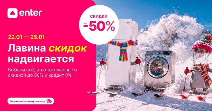 Зачем список? А за тем, что на Enter обрушаться скидки до 50% и кредит под 0% на любимые гаджеты и бытовую технику для современного дома.Только с 22 по 25 января, не упусти возможность обзавестись вместительной посудомоечной машиной, умным роботом пылесосом, впечатляющим телевизором, новеньким телефоном и многим другим, для комфортной жизни.Новогодние праздники закончились, но кто сказал, что нельзя себя ничем побаловать? Так что, готовь снаряжение и приходи в ближайший магазин Enter или закажи онлайн, а мы доставим бесплатно по всей стране!Не зевай! Акция продлиться всего 4 дня!