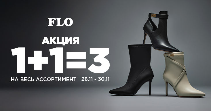Да, 1+1=3 на весь ассортимент, без ограничений по брендам или категориям. Даже товары со скидкой участвуют в акции!Идеальный момент для выгодных покупок — для себя, семьи и друзей. Каждый визит в магазин превращается в увлекательное событие с множеством приятных сюрпризов.FLO — сеть магазинов, специализирующихся на качественной обуви для всей семьи, с моделями на любой случай: спортивные, повседневные, элегантные или офисные, сочетающими современный дизайн, комфорт и доступные цены.Обувь для женщинВ FLO вы найдете спортивные и повседневные кроссовки, стильные ботинки и ботинки для холодного сезона, удобные мокасины для офиса, элегантные туфли для особых случаев и сапоги, которые сделают любой образ эффектным. В акции участвует всё — выбирайте свободно и получайте в подарок то, что нравится!Обувь для мужчинДля мужчин FLO предлагает удобные кроссовки, элегантные лоферы, классические туфли, универсальные ботинки и обувь для активного отдыха — всё со сверхвыгодой по акции 1+1=3. Каждая пара становится ещё ценнее, когда третья — в подарок!Обувь и аксессуары для детейДля самых маленьких — тапочки, кроссовки с мехом, сезонные ботинки и сапоги — всё для комфорта и игр. Также доступны популярные тематические коллекции: Marvel для маленьких героев и Frozen для поклонников любимых сказок.Аксессуары для всей семьиКроме обуви, FLO предлагает широкий выбор аксессуаров, которые дополняют любой образ:Сумки и рюкзаки — для прогулок, работы и путешествийКошельки — практичные и стильныеПовседневные аксессуары — ремни, носки и другие функциональные вещиМагазины FLO открыты по 3 адресам:Port Mall, ул. Михаила Садовяну 42/6, 2 этажArtima Business & Lifestyle, ул. Каля Иешилор 6A, 2 этажCC Bonus, ул. Тирасполь 5, 2 этажПриходите с семьёй и воспользуйтесь акцией 1+1=3!Всего 3 дня — 28, 29 и 30 ноября — приходите в FLO с семьёй или друзьями, выбирайте понравившееся и получайте супер-выгоду по акции 1+1=3. Хотите обувь, аксессуары или подарки для близких — FLO предлагает идеальную возможность покупать разумно и со стилем!