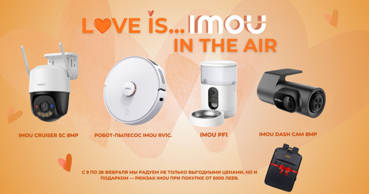 Мы подготовили гармоничную подборку современных устройств от Imou — решений, которые объединяют технологии, удобство и доступную цену, делая их отличным выбором для семьи, друзей и любимых.Безопасность на дороге — видеорегистратор IMOU Dash Cam 8MPБезопасность на дороге начинается с контроля ситуации с умным видеорегистратором IMOU Dash Cam 8MP. Высокое разрешение 8 МП (4K) обеспечивает чёткое изображение днём и ночью, а широкий угол обзора охватывает несколько полос движения. Видеорегистратор оснащён G-сенсором, который автоматически сохраняет важные моменты при резком торможении или столкновении, защищая файлы от перезаписи. Циклическая запись гарантирует непрерывную работу без необходимости вручную очищать карту памяти. Подключение к смартфону по Wi-Fi позволяет просматривать, сохранять и настраивать видео через мобильное приложение, а режим парковки помогает контролировать автомобиль даже тогда, когда вас нет рядом. IMOU Dash Cam 8MP — надёжный, умный и доступный помощник в любых дорожных ситуациях.🔗 Подробнее о модели: imou.mdБезопасность дома и территории — уличная камера Imou Cruiser SC 8MPДля спокойствия дома важно знать, что территория находится под постоянным контролем. Imou Cruiser SC 8MP Камера автоматически реагирует на движение, отслеживает происходящее и отправляет уведомления на смартфон. Разрешение 8 МП позволяет получить чёткое изображение, а ночное видение обеспечивает контроль даже в полной темноте. Устройство легко устанавливается, работает по Wi-Fi и управляется через мобильное приложение. Камера устойчива к погодным условиям и подходит для постоянного использования на улице.🔗 Подробнее о модели: imou.mdКомфорт и чистота каждый день — робот-пылесос IMOU RV1CВ ритме современной жизни особенно важны решения, которые экономят время и упрощают быт. IMOU RV1C — умный робот-пылесос с LiDAR-навигацией, точно ориентирующийся в пространстве и создающий карту помещения для максимально эффективной уборки.Устройство самостоятельно прокладывает оптимальный маршрут, аккуратно объезжает мебель и тщательно убирает всю площадь без пропусков и хаотичных движений. Робот подходит для плитки, ламината и ковров, обеспечивая стабильный результат каждый день.Через мобильное приложение можно настроить расписание, выбрать зоны уборки и адаптировать работу под свой образ жизни. И что особенно приятно — при таком наборе функций IMOU RV1C остаётся доступным по цене, предлагая отличное соотношение стоимости и возможностей.IMOU RV1C — простой, надёжный и выгодный помощник для поддержания чистоты в доме.🔗 Подробнее о модели: imou.mdЗабота о любимых питомцах из любой точки мира — умное устройство IMOU PF1Даже находясь далеко от дома, вы можете быть рядом со своим питомцем. IMOU PF1 — умное устройство для кормления и наблюдения, которое позволяет следить за состоянием и привычками любимца в режиме реального времени через мобильное приложение.Встроенная камера даёт возможность наблюдать за питомцем в любой момент, видеть, как он ест, двигается и чувствует себя в течение дня. А функция двусторонней связи позволяет говорить с питомцем, успокаивать его знакомым голосом и поддерживать контакт, даже когда вас нет рядом.Устройство автоматически подаёт корм по заданному расписанию, помогая соблюдать правильный режим питания и контролировать количество приёмов пищи. IMOU PF1 объединяет забот