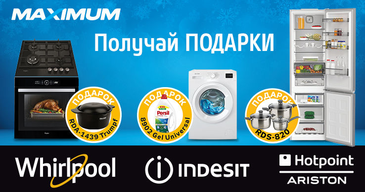 Этот Новый год и Рождество превратятся в настоящую сказку: купи любимую технику и получай подарки, которые делают жизнь удобнее, а дом — современнее.✨ Почему эта техника делает праздник ещё лучше:Каждое устройство — это сочетание надёжности, функциональности и продуманного дизайна. С её помощью повседневные задачи становятся проще, а подарок делает каждый день ещё радостнее. Это не просто покупки — это вклад в комфорт и уют твоего дома.🍽️ Встраиваемая посудомоечная машина Whirlpool WH6UB10BS7A0XСовременная и вместительная, она позволяет мыть до 14 комплектов посуды одновременно. С интеллектуальными программами и технологией Water Balance Plus ты экономишь воду и электроэнергию, не жертвуя качеством. А в подарок — капсулы Power Lamaie 48 tab — каждая тарелка сияет чистотой, превращая рутинное мытьё в праздничное удовольствие.🌀 Стиральная машина с фронтальной загрузкой Indesit IM762MYTIMEEEЭта машина — настоящая находка для семьи: загрузка 7 кг, 1200 оборотов в минуту и инверторный двигатель, который обеспечивает тихую и долговечную работу. Программы адаптированы под разные ткани, а подарочный порошок Gel Universal 2.97л, 66 стирок заботится о том, чтобы праздничные наряды всегда выглядели идеально.❄️ Холодильник с нижней морозильной камерой Whirlpool WHK26404XP7EБольшой объём и технология Total No Frost — никаких забот о размораживании. Продукты остаются свежими дольше, а все любимые блюда и праздничные угощения всегда под рукой. В подарок идёт набор посуды RDS-820 Strike 6 предметов, который превратит каждый праздничный стол в красивую сервировку.🔥 Встраиваемая газовая поверхность Whirlpool GOFL629/NB1Стильная и практичная, с 4 чугунными конфорками разной мощности, которые равномерно распределяют тепло и выдерживают даже активное праздничное приготовление. Лёгкая очистка и продуманный дизайн делают готовку быстрой и удобной. Подарок —сковорода RDA-1398 Strike Wok 28 см — помогает создавать настоящие кулинарные шедевры для всей семьи.🍰 Встраиваемый электрический духовой шкаф Whirlpool AKZM8420/NBПродвинутая конвекция, множество автоматических программ и современный дизайн делают готовку лёгкой и приятной. А подарок — кастрюля RDA-1439 Trumpf 2,35 л — станет надёжным помощником для любых блюд, чтобы каждый праздничный стол выглядел безупречно.✨ Подарки делают праздник ярче!Сделай свои зимние праздники волшебными: техника заботится о комфорте и экономии времени, а подарки — о радости и уюте. Акция действует до 25 января 2026 года. Создай атмосферу праздника для себя и своих близких вместе с Whirlpool, Indesit и Hotpoint-Ariston!🎁 Участвуйте в Новогоднем розыгрыше!Каждая покупка акционных товаров брендов Gorenje и Hisense — это шанс выиграть:🏆 Главный приз — новенький кроссовер GEELY CoolRay Facelift 2026🎉 25 суперпризов — техника от ведущих мировых брендов, чтобы ваш Новый год стал незабываемым!🎁 Условие участия очень простое: Совершите покупку любого товара на сумму от 500 леев в любом магазине MAXIMUM или на maximum.md, и вы автоматически становитесь участником главного розыгрыша:🏆 Главный приз: Новенький кроссовер GEELY CoolRay Facelift 2026 модельного ряда в яркой комплектации! Стильный, мощный, инновационный — он может стать вашим!🎉 25 Фантастических Супер призов от которых кругом голова! Вот эти 25 единиц техники от ведущих брендов, которые сделают ваш дом настоящим "Умным Домом" мечты:🎁 5 шт Smart Телевизоры Samsung UE55U8000FUXUAс 4K экраном 55” (140 см)🎁 5 шт Стиральны