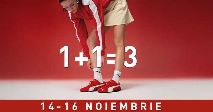 Puma Moldova вновь радует своих поклонников эксклюзивными предложениями! С 14 по 16 ноября во всех магазинах бренда и в официальном интернет-магазине действует акция 1+1=3. Это значит, что при покупке двух товаров Puma вы получаете третий абсолютно бесплатно. Не упустите шанс обновить гардероб!Огромный выбор товаров и коллекцийВ акции участвуют все товары Puma, включая новинки сезона так и коллекции со скидками. Это идеальный момент, чтобы выбрать что-то из широчайшего ассортимента бренда: обувь, одежду и аксессуары на любой вкус и возраст. В наличии есть как модные новинки, так и классические модели, а также осенне-зимние товары, которые помогут подготовиться к холодному сезону с комфортом и стилем.Как получить подарок:Подарком станет товар с наименьшей стоимостью из трёх выбранных. Вы сами формируете комплект, выбирая, что хотите забрать в подарок. Такой формат позволяет сочетать разные коллекции, экспериментировать с образами и создавать свой уникальный стиль.Дополнительные условия для онлайн-покупателей:Покупая товары через интернет-магазин Puma Moldova, вы получаете дополнительную скидку 5%. Доставка по Молдове быстрая и удобная, а в Кишинёве бесплатная - обновите стиль, не выходя из дома! При этом важно помнить: - дополнительные скидки по дисконтным картам в период акции не действуют;- бонусная система во время акции не действует - баллы не начисляются и не списываются.Эта акция - отличная возможность обновить гардероб, открыть для себя новые коллекции Puma и приобрести стильные осенне-зимние товары по выгодной цене. С таким разнообразием моделей каждый найдёт что-то для себя - не упустите шанс, акция действует всего три дня!