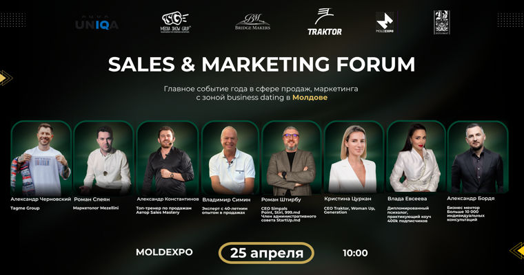 Все приходят на форумы за знаниями и новыми знакомствами, но когда дело доходит до общения - не всегда кажется уместным подходить к незнакомым людям.На Sales&Marketing Forum этот процесс берут на себя организаторы - компания "Bridge Makers".Здесь не делают ставку только на сцену или только на нетворкинг. Смысл - в связке: сначала участники получают общий контекст и инструменты, затем - сразу применяют это в общении друг с другом.ПрограммаПрограмма: новые темы от сильных экспертов, раскрытие темы со всех сторон. Контент форума выстроен вокруг трех направлений - бизнес, продажи и маркетинг.В фокусе:как выстраивать управляемые системы продаж на перегретом рынкекакие маркетинговые инструменты сейчас действительно дают результат, а не слив бюджетакак синхронизировать маркетинг и продажи внутри компании без перекосовСпикеры - практики с реальным опытом: предприниматели, руководители и эксперты, работающие с локальным и международным рынком. Задача выступлений - не "вдохновить", а задать рамку и рабочие инструменты, которые можно обсудить и применить дальше.Отдельный акцент - спикеры не будут продавать свои услуги на сцене.Для компаний, которые продвигают свои услуги будет создана экспо-зона. 500+ участников форума познакомятся с услугами и товарами партнеров. Конверсия в покупку в этом формате выше 40%, вместо стандартных 15-20.Bussines DatingBussinesDating: продолжение программы, а не отдельная активность.После контента участники переходят к Bussines Dating - структурированным знакомствам в формате коротких встреч.30 столов, 60 участников2 минуты на знакомствообмен контактами, переход к следующему раундуЭто не случайный нетворкинг, а логичное продолжение программы:вы уже понимаете, о чем говоритьвидите, у кого схожие задачиможете обсуждать конкретные решения, а не общие темыФормат позволяет за один день провести десятки целевых диалогов - с предпринимателями, продажниками и маркетологами из разных ниш.АудиторииОрганизованна и более свободная нетворк-зона - лаундж с модераторами и вспомогательными карточками.Форум объединяет три группы, которые не всегда работают синхронно:Предприниматели ищут точки роста, партнеров и решения для масштабирования.Продажники. получают прямой доступ к бизнесу и развитию новых каналов продаж.Маркетологи видят рынок напрямую и расширяют понимание связки своей работы с продажами.Bussines Dating становится местом, где эти роли пересекаются и начинают работать как единая система.Почему это работаетОтдельно контент дает понимание.Отдельно нетворкинг дает контакты.Комбинация дает результат:идеи сразу проверяются в диалогеконтакты появляются уже в общем контекстерешения ускоряются за счет прямого общенияSales & Marketing Forum - это формат, где знания не остаются в заметках телефона, а сразу переходят в разговоры, договоренности и потенциальные сделки.Дата и место25 апреля, MoldexpoНачало в 10:00