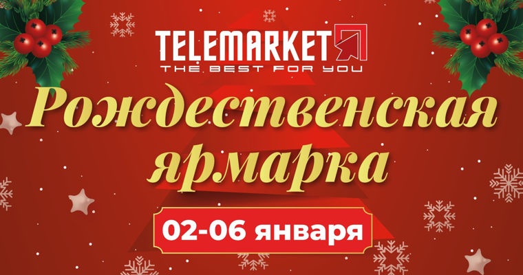 Скидка -20% на весь ассортимент в магазинах это повод запастись вначале года каждой хозяйке. В эти дни в магазинах Telemarket вас ждут выгодные предложения на товары для дома, красоты, уюта и подарков: полезная техника, аксессуары, товары для ухода, практичные мелочи и стильные решения для повседневной жизни. Скидки на отдельные позиции достигают –50%, а ассортимент подобран так, чтобы каждый нашёл что-то нужное именно себе.Ярмарка — это возможность начать новый год с обновлений: сделать дом комфортнее, порадовать близких и подарить себе немного внимания.Все предложения действуют во всех магазинах Telemarket и онлайн магазине, в пределах доступного количества.Ждём вас на Рождественской ярмарке Telemarket с 2 по 6 января —там, где выгодные покупки сочетаются с праздничным настроением и заботой в каждом магазине Telemarket! Новых встреч в 2026 году!