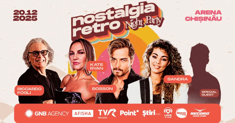 Всё больше людей выбирают провести свободное время, погружаясь в атмосферу музыки 70-х, 80-х и 90-х. Будь то незабываемые хиты или сильные эмоции, связанные с воспоминаниями, ретро-волна объединяет целые поколения.Почему ретро-концерты снова в моде?Прежде всего, ключевую роль играет ностальгия. Для многих песни тех десятилетий — это детство, юность или яркие моменты жизни, наполненные эмоциями. Ретро-музыку не просто слушают — её проживают.Кроме личной ностальгии есть и культурный интерес. Молодёжь открывает музыку прошлых лет через фильмы, сериалы или цифровые платформы и хочет почувствовать живьём атмосферу, которая формировала предыдущие поколения. Ретро-концерты объединяют семьи, друзей и поклонников всех возрастов.Nostalgia Retro Night Party 2025 в Arena ChișinăuГлобальный тренд дошёл и до Молдовы — Nostalgia Retro Night Party 2025 обещает стать настоящим путешествием во времени. 20 декабря Arena Chișinău превратится в сцену, наполненную светом и легендарными хитами мировых звёзд, которые оставили след в истории музыки.На сцену выйдут Riccardo Fogli, Kate Ryan, Bosson, Sandra и ещё один приглашённый артист-сюрприз.Это идеальная возможность снова пережить дорогие сердцу моменты и создать новые — вместе с близкими.Nostalgia Retro Night Party — это не просто концерт. Это долгожданное событие, где эмоции, энергия и воспоминания объединяются в незабываемой атмосфере.Билеты уже в продаже на afisha.md — количество мест ограничено, и это опыт, который нельзя пропустить.