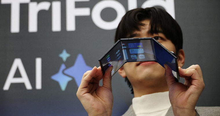 Южнокорейская компания Samsung Electronics объявила о выпуске своего первого складывающегося втрое смартфона Galaxy Z TriFold. Согласно релизу на сайте производителя, новинка поступит в продажу в Южной Корее 12 декабря, а затем появится в магазинах и в других странах, включая Китай, Тайвань, Сингапур, ОАЭ и США. Цена модели — 3,59 млн вон (около $2440).Ключевой особенностью Galaxy Z TriFold станут G-образная конструкция и двойные титановые шарниры. В полностью раскрытом виде диагональ экрана телефона составит 10 дюймов, что сопоставимо по функциональности с планшетом. Масса устройства — 309 г. Цвет один — черный.Когда смартфон сложен, экран помещается внутрь изделия, что защищает дисплей от внешних ударов и царапин. В компании отметили, что складной механизм был тщательно спроектирован для легкого открывания и закрывания. В случае если пользователь неправильно сложит гаджет, на экране появится автоматическое уведомление, а телефон начнет вибрировать.За автономность отвечает аккумулятор емкостью 5600 мА·ч, что считается рекордным показателем для складных смартфонов Samsung. Он размещен в каждой из трех панелей устройства, это позволяет обеспечить сбалансированную подачу энергии и гарантировать стабильную работу в течение всего дня. Смартфон поддерживает проводную зарядку мощностью 45 Вт и беспроводную зарядку мощностью 15 Вт.Программное обеспечение реализовано через OneUI 8 на базе Android 16. Смартфон работает в паре с 16 ГБ оперативной памяти и 512 ГБ или 1 ТБ встроенной флеш-памяти. Задняя тройная камера состоит из основного датчика на 200 Мп, 10-мегапиксельного модуля с трехкратным зумом и 12-мегапиксельного сверхширокоугольного модуля. Фронтальных камер две, обе на 10 Мп.