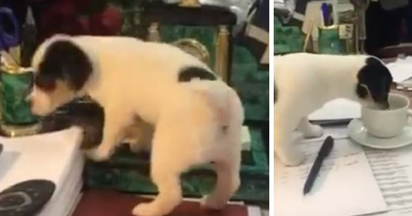 Щенок смело погулял по президентскому столу, знакомясь с рабочим местом нового хозяина, и даже заглянул в его чашку, чем насмешил присутствующих. Подарок пришелся по душе главе государства, передает aif.mdОн отметил, что обрадуется и его младший сын Никушор.