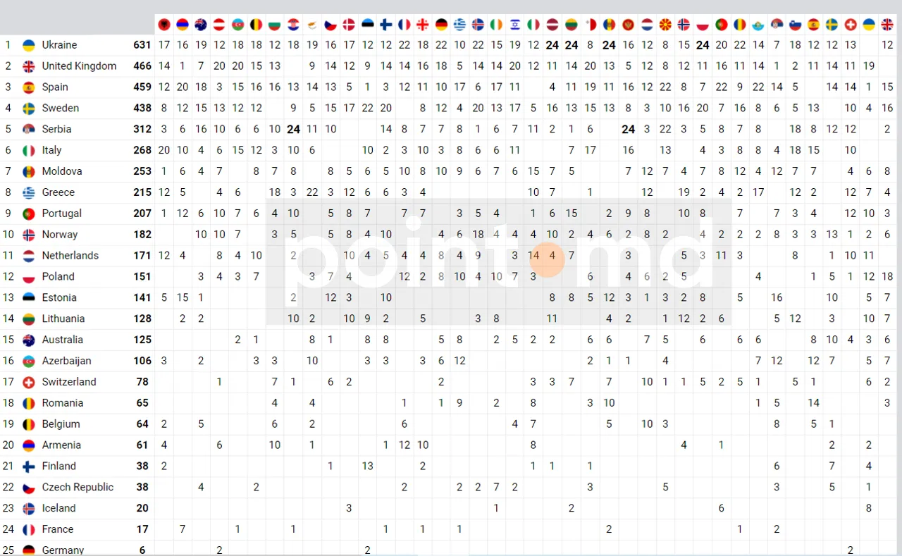 Шесть баллов поставила Молдове Украина, они также были аннулированы.
