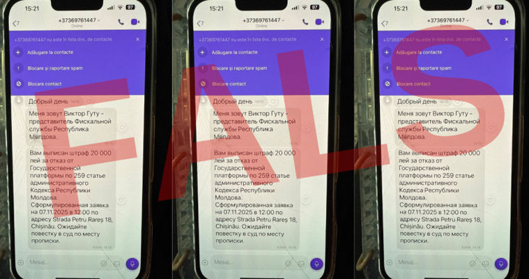 Злоумышленники представляются сотрудниками Государственной налоговой службы и информируют налогоплательщиков о якобы наложенном на них штрафе в размере 20 тыс. леев. При этом мошенники ссылаются на несуществующие статьи Административного кодекса и предлагают явиться по адресу, который не имеет отношения к подразделениям ГНС, передает rupor.mdГосударственная налоговая служба подчеркивает, что эти сообщения не исходят от учреждения, и его название неправомерно используется мошенниками. ГНС уточняет, что общение с налогоплательщиками относительно их обязательств носит исключительно официальный характер.В связи с этим налоговая служба призывает граждан игнорировать подобные сообщения и немедленно информировать правоохранительные органы, а также саму Государственную налоговую службу. Для проверки любой информации ГНС рекомендует использовать только официальный веб-сайт и официальные страницы учреждения в социальных сетях.