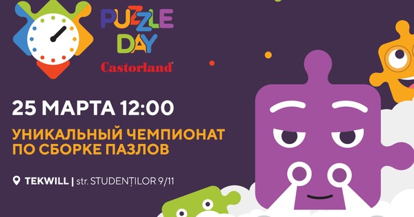 Для того чтобы принять участие в Puzzle Day Castorland 2018 нужно всего-то собрать команду от 2-х до 4-х человек. Хватайте своих друзей, маму, тетю, сестру, бабушку. Можно даже дедушку “вытащить” из гаража, где он пропадает целыми днями.Вас ждут 500 деталей, 2 часа и одна картинка, которую необходимо собрать быстрее всех остальных.Стоимость участия команды, которая, кстати, может называться как угодно, составляем 100 леев.Для участия необходима регистрация на сайте Puzzle Day Castorland 2018.Чемпионат пройдёт в двух категориях: любители и профессионалы. Профессионалам придётся немного попотеть, чтоб получить главный приз. Будем рады видеть победителей прошлых лет в новой категории. Победители – любители также не уйдут без призов.Если вы любите собирать пазлы, и хотите потягаться в этом с другими командами – регистрируйтесь и пока просто тренируйтесь, собирая как можно больше пазлов за ограниченное время.25 марта уже совсем скоро! Мы будем ждать именно вас в Tekwill, старт в 12.00.
