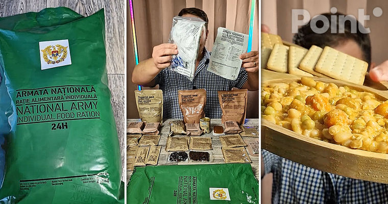 Меню включает три основных приема пищи: завтрак, обед и ужин, а также изотонические и энергетические напитки, десерты и сухофрукты. Продукты производятся в Испании, пишет stiri.mdСогласно информации на упаковке, рацион обеспечивает энергетическую ценность более 4250 килокалорий и рассчитан на физическую нагрузку. В каждой упаковке около 50 наименований в индивидуальной упаковке.На завтрак подают курицу с фасолью и овощами, сладкое и солёное печенье, фруктовый джем, сухое молоко, сахар, кофе и энергетический батончик.На обед — свинина с макаронами, кекс, ореховый коктейль, курага и высокобелковый напиток.На ужин — говяжий гуляш, печенье, батончик с какао и другие энергетические продукты. К каждому приему пищи подаются изотонические напитки или какао-порошок.В комплект входят: беспламенный нагреватель, вилка, салфетки, жевательная резинка, пакет и мешок для горячей воды.Согласно информации на упаковке, суточная норма потребления составляет:Энергетическая ценность: 4256 ккал;- Белки: 198 г;- Углеводы: 581 г (из них 246 г сахара);- Жиры: 118 г;- Клетчатка: 50 г;- Соль: 17 г.
