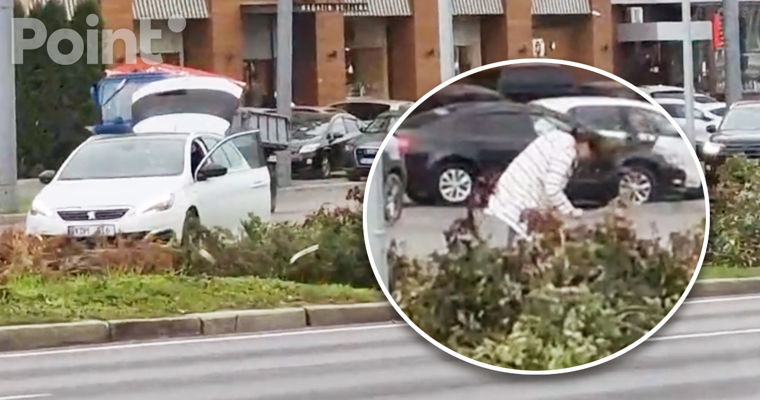 На кадрах видно, что женщина остановила машину, не обращая внимания на другие транспортные средства в потоке, открыла багажник и пошла к муниципальной клумбе, чтобы сорвать букет цветов.После этого она спокойно села в машину и уехала.