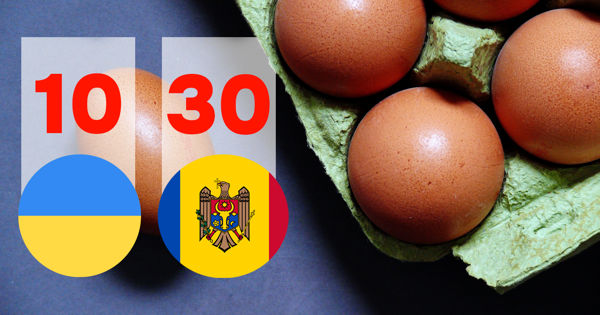 Так, например, десяток куриных яиц в магазинах Украины, где уже более полугода продолжаются боевые действия, стоит в 2 - 3 раза дешевле, чем в Молдове. Об этом рассказала в социальной сети жительница Кишинева на пятый день своего пребывания в Одессе."Цены! Вы только взгляните на них! Как говорят в Одессе, это же песня!" - пишет изумленная женщина.Она отметила, что за 1 гривну дают в обменниках 30 банов. "Проще говоря, разделите ценники на 3,3. И вы увидите, как живет народ во время войны. Даже если разделить на довоенный курс, примерно на 2 - это почти коммунизм! Десяток яиц - 10 леев. Самое дорогое пирожное в кафе - 27 леев", - сообщает автор поста.Согласно данным, которые можно получить на сайтах интернет-магазинов, украинские продавцы предлагают куриные яйца по цене около 29 гривен. По официальному курсу, совпадающему с довоенным, 1 гривна стоит сейчас 0,52 лея.Таким образом, цена десятка куриных яиц в Одессе может варьироваться в зависимости от обменной стоимости украинской валюты примерно от 8 с небольшим до 16 леев.Как сообщалось ранее, в Молдове на данный момент за десяток яиц приходится заплатить от 24 до 36 леев, то есть, средний показатель - 30 леев. Согласно прогнозам экспертов, вскоре он может возрасти до 50 леев."Ёлки - палки! Так в какой стране война? Кто объяснит, что происходит в Молдове?" - недоумевает жительница Кишинева в Одессе, которая совсем недавно подвергалась обстрелам.
