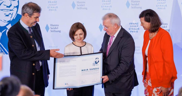 Церемония награждения прошла 21 июня в Мюнхене во время визита главы государства в Германию, передает tv8.md"Эта награда — признание усилий всех граждан Молдовы, которые ежедневно вносят вклад в укрепление демократии в нашей стране. Это награда для всех людей в нашем регионе, которые, несмотря на вызовы, выбирают смелость, правду и мир", — заявила Санду в ходе церемонии.В рамках визита состоялась двусторонняя встреча между президентом Санду и руководством фонда Ханса Зайделя, в ходе которой обсуждались перспективы углубления сотрудничества между Молдовой и федеральной землёй Бавария в сферах экономики, безопасности, образования и регионального развития.Санду сообщила, что денежная часть премии в размере 10 000 евро направится на сохранение и продвижение музыкального наследия недавно покинувшего нас выдающегося молдавского композитора Евгения Доги.