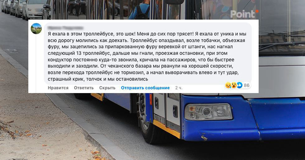 В комментариях к новости о ДТП на странице Point.md в Facebook появился рассказ очевидца жуткой трагедии на Чеканах.По словам одной из пассажирок троллейбуса, водитель спешил, а кондуктор все время "кричала на пассажиров, чтобы быстрее выходили и заходили"."Я ехала в этом троллейбусе, это шок! Меня до сих пор трясет! Я ехала от "Уника", и мы всю дорогу молились, чтобы доехать. Троллейбус опаздывал, возле "Табачки", объезжая фуру, мы зацепились за припаркованную фуру веревкой от штанги, нас нагнал следующий 13 троллейбус, дальше мы гнали, проезжая остановки, при этом кондуктор постоянно куда-то звонила, кричала на пассажиров, чтобы быстрее выходили и заходили. От чеканского базара мы рванули на хорошей скорости, возле перехода троллейбус не тормозил, а начал выворачивать влево, и тут удар, страшный крик, толчок, и мы остановились", - написала женщина, которая ехала в троллейбусе. Также был опубликован видеофрагмент, когда девочка вышла на проезжую часть.Ранее полиция сообщила, что девочке было 12 лет. Она переходила дорогу по пешеходному переходу. Сообщается, что за рулем троллейбуса была женщина.