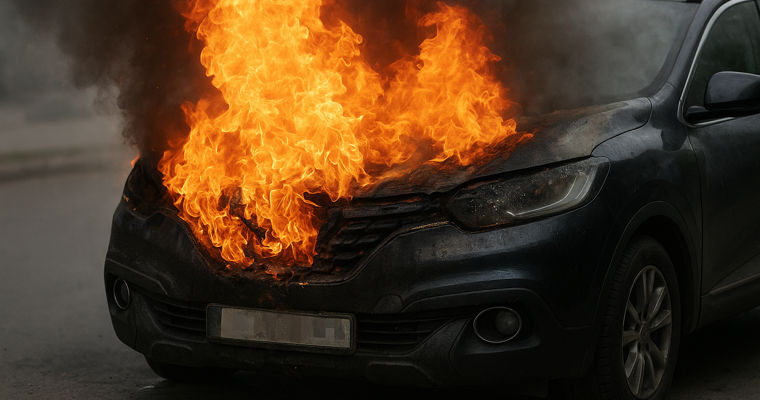 На место происшествия направили экипаж пожарных. Спасатели установили, что возгорание произошло во время движения автомобиля. Пламя до прибытия пожарных пытались потушить прохожие, сообщает Генинспекторат по чрезвычайным ситуациям.Владелец автомобиля пытался самостоятельно потушить пожар, но получил отравление угарным газом и лёгкие ожоги левой руки. Его передали бригаде скорой помощи и доставили в больницу для оказания медицинской помощи.В результате пожара частично пострадал моторный отсек автомобиля марки Renault Kadjar. Причина возгорания и размер материального ущерба будут установлены специалистами.