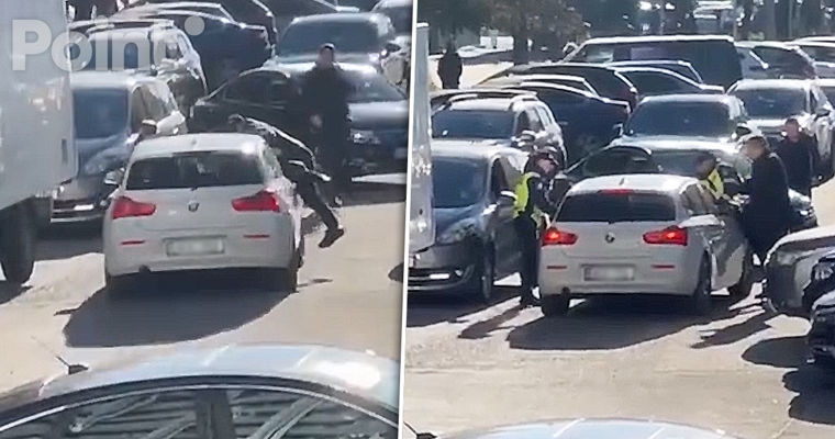 Инцидент произошел возле ASEM, а момент запечатлел очевидец, который поделился видео в социальных сетях, сообщает ziua.mdПодробностей об этом происшествии и о том, чем рискует водитель, полиция пока не сообщила.Однако из предыдущих подобных случаев в таких ситуациях в отношении водителя возбуждается уголовное дело, как это произошло три месяца назад, когда инспектор патрульной службы оказался на капоте микроавтобуса при попытке снять номерные знаки. Инцидент произошел в Яловенах, где правоохранитель после остановки движения установил, что у водителя транспортного средства имеется ряд нарушений и неоплаченные штрафы.