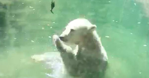 В мюнхенском зоопарке полярный медведь вместо того, чтобы съесть маленькую птичку, доставленную ему на обед, стал подбрасывать ее в воздух. Необычные кадры сняли местные жители, передаёт tvzvezda.ruНа записи видно, как животное плавает в бассейне вместе с птицей, нюхает ее, подкидывает, облизывает, затем снова бросает наверх.Глядя на происходящее, очевидцы предположили, что косолапый таким образом пытался «оживить» птицу, хотел, чтобы она взлетела и вовсе не собирался ее есть.Однако действия медведя не приводили к желаемом результату, продолжая держать в лапах безжизненную птицу, хищник поплыл к краю вольера и положил ее на бетонный выступ.Среди зрителей нашлись те, кто посчитал, что зверь не собирался спасать птицу, а просто играл со своей едой.
