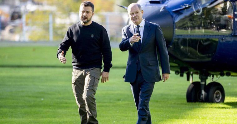 Из внутреннего документа министерства, на которое ссылаются журналисты, следует, что передача техники Киеву "завершена". После поставки 18 танков Leopard-2, отмечает издание, у бундесвера их остается около 300 единиц. То же самое касается БТР и самоходных гаубиц, пишет Bild. В Берлине при этом также "не верят в то, что Украина в скором времени будет в состоянии" провести контрнаступление, пишет dw.comЗеленский попросил Шольца разрешить бить немецким оружием вглубь РоссииКак пишет Bild, на встрече с канцлером ФРГ Олафом Шольцем (Olaf Scholz) в Берлине президент Украины Владимир Зеленский попросил разрешить ВСУ наносить удары вглубь России немецким вооружением, а также ускорить процесс вступления своей страны в НАТО. Эти требования были восприняты "без энтузиазма", а Шольц, хотя и не сказал "нет", не дал Зеленскому положительного ответа.В статье также отмечается, что все оружие, которое канцлер ФРГ пообещал передать Украине в пятницу, 11 октября, уже было "обещано и профинансировано в прошлом году". Таким образом, на самом деле новой военной помощи Киеву обещано не было, пишет Bild.Шольц упомянул необходимость проведения новой мирной конференции по УкраинеВ ходе совместного выступления перед журналистами с Владимиром Зеленским Олаф Шольц заявил о необходимости проведения после встречи в швейцарском Бюргенштоке еще одной международной мирной конференции по урегулированию конфликта в Украине. В этот раз - с участием России. Но достижение мира, констатировал Шольц, может быть осуществлено только на основе международного права: "Мы не примем мира под диктовку России", - сказал он.Президент Украины, в свою очередь, отметил, что Владимир Путин уклоняется от честной дипломатии и прекращения войны в соответствии с Уставом ООН. Он заявил, что предоставит Шольцу план, который должен заставить Россию прекратить войну и исключит повторение агрессии в будущем.
