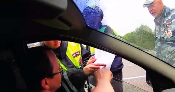 Запись инцидента с видеорегистратора появилась в Telegram, пишет lenta.ru.На кадрах видно, как стражи порядка при беседе с автомобилистом пытаются использовать специальную шпаргалку. Однако диалога не выходит, и в результате они отпускают водителя.