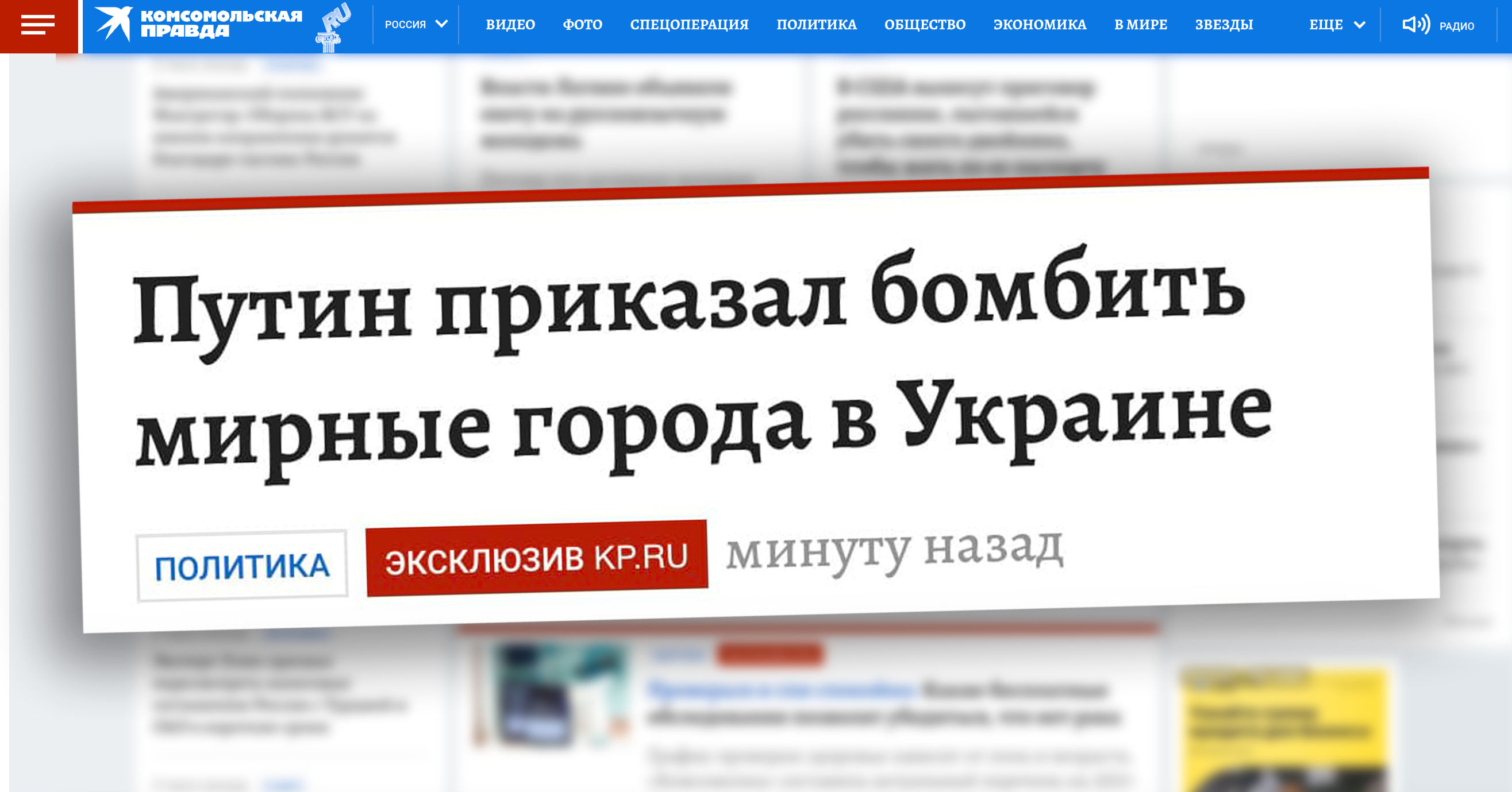 По данным издания, материалы, в которых, в частности, содержались утверждения, что российская армия совершает преступления в Украине, а президент Владимир Путин "бомбит мирное население", разместил 24-летний новостник Владимир Романенко.Сейчас эти посты уже недоступны, однако копия одной из страниц сохранились в архиве. "Публикации не продержались и десяти минут", - рассказал Романенко, их удалил выпускающий редактор.Среди заголовков опубликованных текстов, например: "Российские активисты продолжают сопротивление путинскому режиму вопреки репрессиям", "Мир не наступает из-за Путина", "Пытки над Навальным".По словам Романенко, с самого начала войны он выступал против неё, однако пошёл работать в "Комсомольскую правду" ради заработка. После объявления мобилизации он уехал из России, но продолжил работать удалённо. Редактор утверждает, что понимает, что останется без работы, но "воспринимает это как искупление вины". "Моё высказывание — про то, что и в пропаганде есть люди, которые еще сопротивляются", - заявил Романенко. "Комсомольская правда" пока не комментировала случившееся.