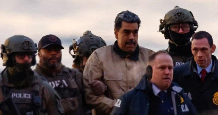 Оба они — в одежде, похожей на тюремную. Мадуро, похоже, немного прихрамывает, сообщает bbc.comИх сопровождают несколько агентов Управления по борьбе с наркотиками (DEA).Операция по захвату венесуэльского президента под названием «Абсолютная решимость» (Absolute Resolve) была проведена ночью 3 января. По стратегическим объектам в Каракасе и других районах были нанесены ракетные удары. Николас Мадуро и его жена Силия Флорес были захвачены и вывезены из страны в США.Мадуро и его супруге предъявлены обвинения в «наркотерроризме», хранении оружия и контрабанде наркотиков, их будут судить в США, сообщила генеральный прокурор Пэм Бонди.