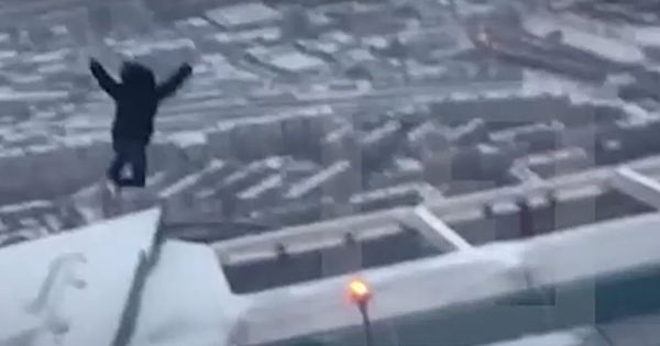 Перед самым прыжком молодой человек на секунду застывает, словно поражённый открывшейся у него под ногами картиной, после чего толкается ногами и прыгает вперёд.По рассказам очевидцев, молодой человек приехал со своим отцом, чтобы покататься на коньках. В небоскребе "Око" на одном из последних этажей есть ледовая площадка под открытым небом. Через некоторое время тело молодого человека обнаружили на автомобильной парковке возле здания. Парень упал на автомобиль марки Gelandewagen.