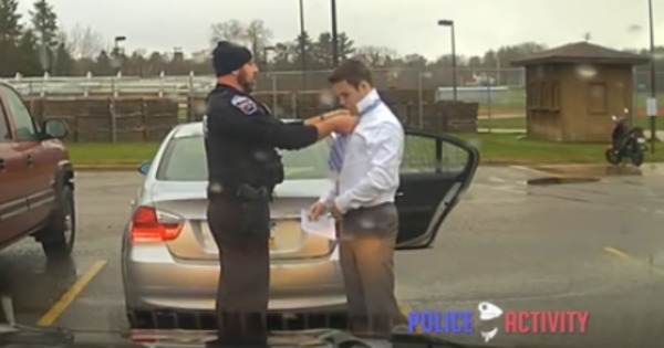 Студент Тревор Кини рассказал офицеру, что опаздывает на презентацию и пытается найти своего друга, который поможет ему завязать галстук.Фолкзик предложил молодому человеку свою помощь, завязав узел на галстуке и заодно проверив водительские права и страховку Кини. За правонарушение студент отделался предупреждением.Кини рассказал журналистам, что набрал на презентации высокие 92 балла и решил взять у офицера ещё один урок."Я вернулся и встретился с ним ещё раз. И он научил меня! Это было круто", —поделился впечатлениями студент.