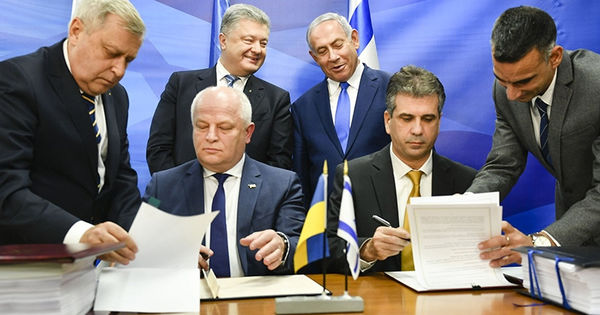 Израиль стал 46-й страной, с которой Украина подписала соглашение о свободной торговле. С момента его вступления в силу будут отменены ввозные пошлины для примерно 80% украинских промышленных товаров, сообщает Министерство экономического развития и торговли Украины, передаёт news.ruДокумент поможет в развитии двустороннего торгово-экономического сотрудничества и будет содействовать снижению цен на украинские товары в Израиле и израильские товары на Украине, написал в своём аккаунте в Twitter президент Украины Пётр Порошенко.Во время церемонии подписания соглашения Порошенко воспользовался случаем и пригласил в страну премьер-министра Израиля Биньямина Нетаньяху.«Я бы хотел использовать эту возможность и пригласить вас в Украину и выступить в нашем парламенте», — сказал Порошенко.Позже президент Украины рассказал о договорённости посетить вместе с израильским премьером Одессу — город с «очень большой историей еврейского народа».