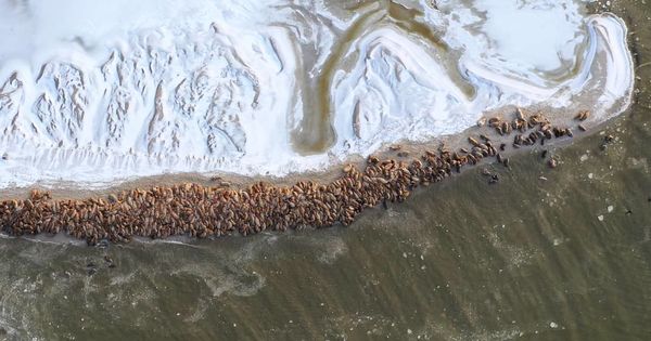 Губернатор Ямало-Ненецкого автономного округа Дмитрий Артюхов рассказал о том, что на западном побережье Ямала одновременно собралось больше тысячи моржей, передает life.ru"Это уникальный природный феномен. Раньше они выходили на наши берега только небольшими группами" — отметил Артюхов на своей странице в Instagram.Отмечать растущее количество моржей на пляжах региона начали ещё в начале месяца, но тогда насчитали только триста особей.
