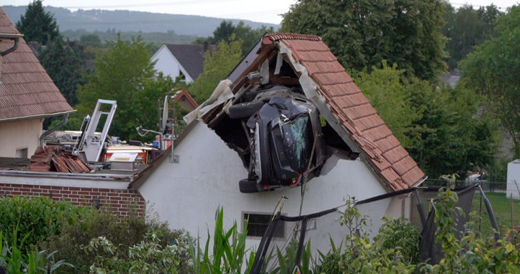 Об этом, как пишет eurointegration.com.ua, говорится в публикации издания Bild.Автомобиль на большой скорости промчался по двору, пересек сад и сбил 7-летнего ребенка, который играл на батуте. Затем машина каким-то образом оторвалась от земли, пролетела в воздухе и врезалась во внешнюю стену соседнего хозяйственного здания на уровне второго этажа. Там транспортное средство застряло под крышей.По данным полиции, мальчик получил тяжелые, возможно, опасные для жизни травмы.На место происшествия сразу прибыли пожарная служба, скорая помощь и спасательный вертолет. Для технической спасательной операции привлекли пожарный кран.Кроме того, психологи оказывали помощь местным жителям и очевидцам.Всего пострадали шесть человек – кроме мальчика на батуте, также и пассажиры автомобиля. В машине находились пять человек, среди них трое детей в возрасте 11, 12 и 13 лет.Все пассажиры получили легкие травмы, 43-летняя женщина на переднем сиденье получила тяжелые ранения.Как именно произошел этот инцидент, пока неизвестно. В то же время полиция исключила, что водитель был в состоянии алкогольного опьянения. Начато расследование.