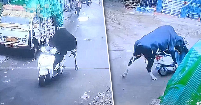 Прекратить свою поездку животному удалось лишь с помощью стены, передает gazeta.ruУличная камера запечатлела инцидент. На кадрах видно, как бык подходит к припаркованному скутеру и копытами надавливает на него, отчего транспорт начинает ехать. На записи также видно, как скутер с животным останавливается после столкновения с препятствием.