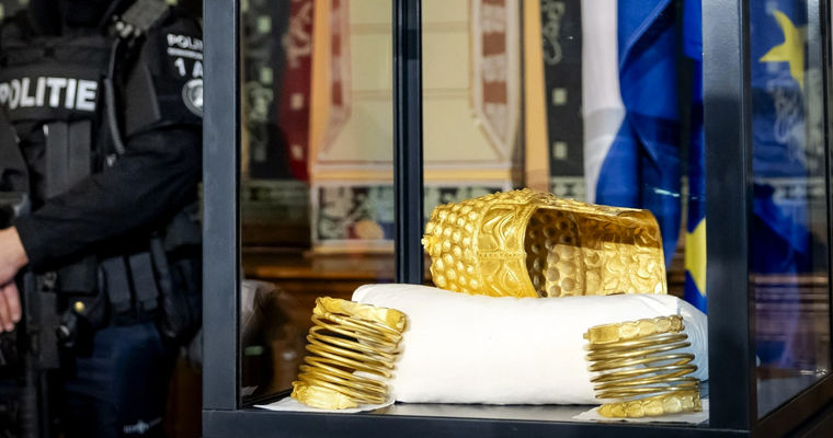 Днем 2 апреля, вскоре после объявления о находке похищенных артефактов, в Нидерландах публично продемонстрировали дакийский золотой шлем и два из трех браслетов, передает eurointegration.com.ua со ссылкой на nos.nlПресс-конференция состоялась в зале Музея Дренте, откуда и произошло похищение, при масштабном присутствии охраны.Директор музея отметил, что шлем получил небольшое повреждение, но может быть полностью отреставрирован, а два браслета не пострадали вовсе.О судьбе третьего браслета пока ничего не сообщается. Также не раскрывают, где и при каких обстоятельствах были найдены сокровища.