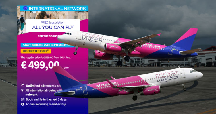 Венгерский лоукостер Wizz Air запустил услугу All You Can Fly, предлагающую безлимитные полеты на все ее международные рейсы в течение года, сообщает delfi.ltУслуга работает по типу подписки. 14 и 15 августа ее можно приобрести за 499 евро, с 16 августа цена возрастет до 599 евро. Также за каждый рейс пассажирам будет необходимо доплатить 9,99 евро. Кроме того, в тариф входит только один предмет ручной клади (40 x 30 x 20 см), за остальной багаж придется доплатить. Бронировать рейс в рамках All You Can Fly можно минимум за три дня до даты вылета, если на выбранном направлении есть свободные места. Услуга распространяется на рейсы, который авиакомпания будет выполнять с 25 сентября 2024 года.